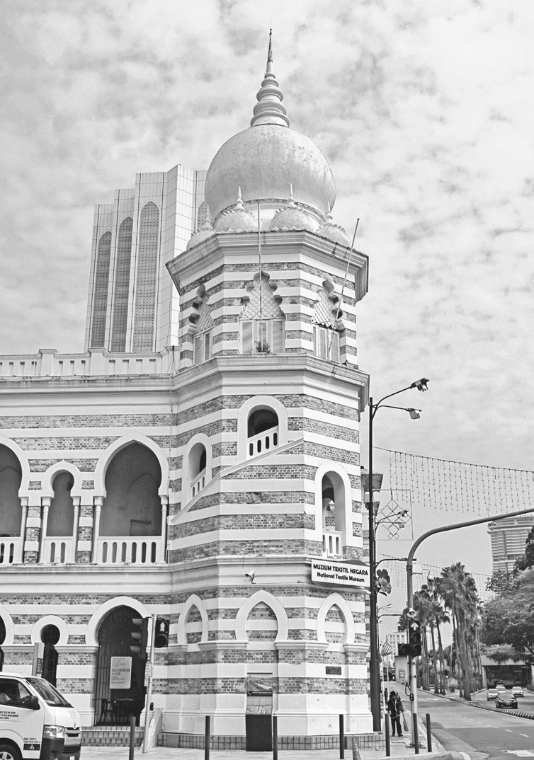 车行驶在市中心,清真寺宣礼塔传来《古兰经》的吟诵音乐,在耳畔中久久回荡。抬头仰望,远处宏伟的双子塔和周围鳞次栉比的摩天大楼高耸入云,在阳光照射下闪烁着耀眼光芒。五颜六色的旅游大巴在路上忙碌地穿梭,构成一道道流动的风景线。黑皮肤的印度人、头顶宋谷帽或包裹头巾的马来人、高鼻蓝眼的欧美背包客熙熙攘攘地穿行在大街小巷,提示你身处异国他乡,但街头“华文小学”“华文独立中学”“中医诊所”“茶餐室”“肉骨茶”等醒目的中文招牌和超市门口摆放着各种繁简字混杂的《星洲日报》《光华日报》《中国报》等中文报纸,又让人恍如置身港澳。