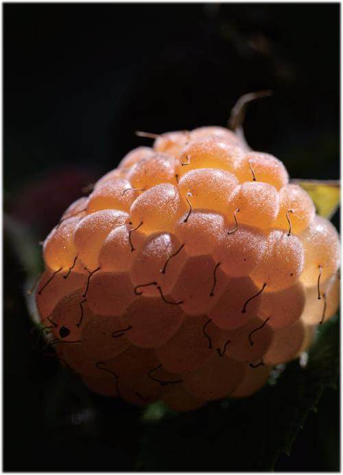 悬钩子属的果实长得像漿果,但它是由许多小核果组成的聚合果。鲑鱼莓是蔷薇科悬钩子属的一种荆棘植物。鲑鱼莓结出的果实有红色和黄橙色两种颜色。红色能吸引鸟类,而黄橙色对哺乳动物则更有吸引力。