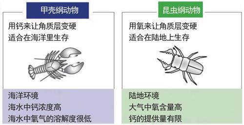 在最近的一项研究中,一个科学团队运用分子种系遗传学技术发现,虽然海洋里的甲壳纲动物和陆地上的昆虫都属于泛甲壳动物科,但昆虫是该科中离开海洋并适应了陆地生活的一个分支。甲壳纲动物和昆虫有一个重要的共同特征——由一个蜡质层和一个硬角质层组成的外骨骼。