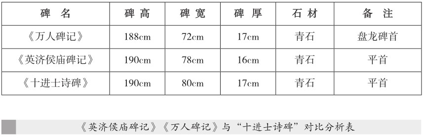 从“十进士诗碑”诸诗内容分析,当为同一时间雅集唱和之作。第一首中的“主宾”,第四与六首中的“群公”,第八首中的“宾从”,第十首中的“群彦”,第五首与十首中的“熙熙”,均说明是一次有人发起相邀,众人响应随行的郊外雅集;第二首、第四首与第八首的“观风”,说明出行目的“出郭元非避俗尘”;第一首与九首中的“暮春”,第二首与三首中的“残春”,说明出行的时间在春三月;第一首中的“马蹄”,第二首、第六首与第九首中的“骢马”,第五首中的“青骢”,第四首中的“并辔”,第六首中的“羁绊后蹄轮”,第十首中的“联辔”,说明出行既非乘车,也非徒步,而是众人骑行;第一首中的“归晚东溟起月轮”,第七首中的“夜深”,第八首中的“明月东生”,第十首的“归迟”,说明众人出行雅集一直到晚上才返回城中。综合分析十首同韵诗作发现,发起雅集者当为第一首诗作者陈璧,众人皆随行者,并步韵陈璧诗作唱和。