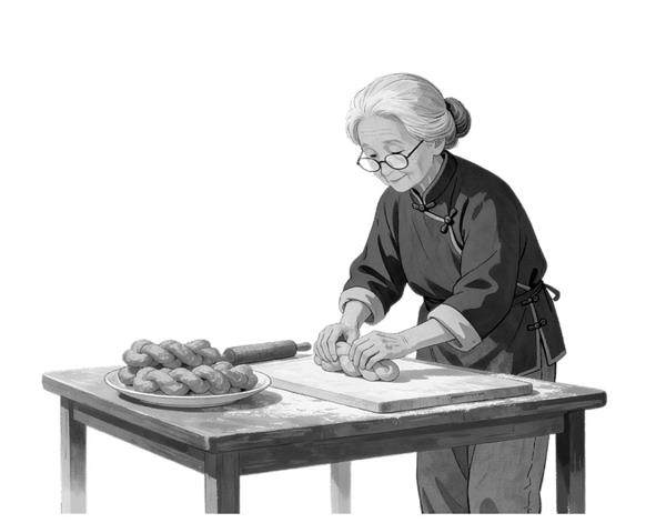 祖母居住在鄂东南一座依山傍水的小镇,那里青石板铺就的巷子蜿蜒曲折,白墙黛瓦的老宅错落有致。每当逢年过节或重要日子,小镇的街头巷尾便会飘起炸麻花的香气。这香味与祠堂的香火、戏台的锣鼓声交织在一起,构成了我童年最熟悉的生活图景。据祖母说,我们家乡的蜂蜜麻花已有百余年历史,是当地重要的节庆美食。