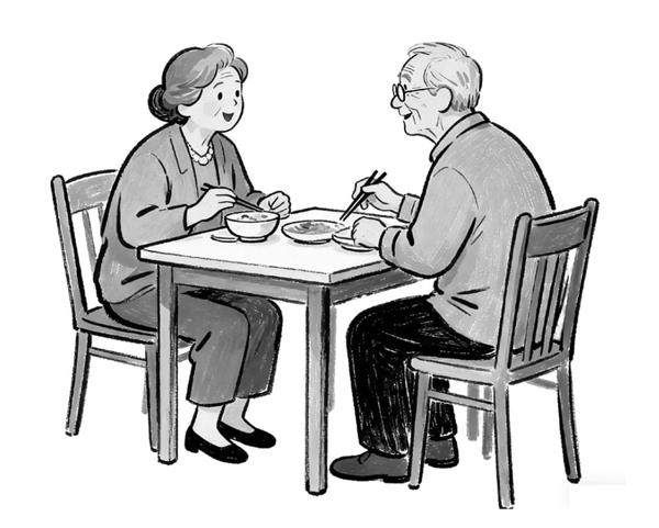 父亲母亲一直在这张小方桌前相互陪伴,他们年老了,发出的咀嚼声音也细微了,寂静中显得有些落寞孤单。每次母亲往父亲的饭碗里夹菜,她自己不吃,就凝视着在一旁吃饭的父亲,那深深的目光,仿佛要把他的样子深深刻在记忆里。