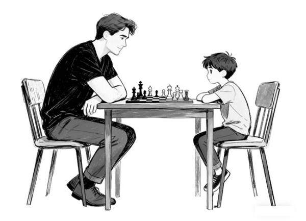 我拿着蛇棋来到儿子的房间,见他情绪依然不高,便笑着走上去说:“怎么,要不要和老爸再来几盘?这次你看老爸在遇到蛇头退回原点时是怎么处理的。”儿子有些不情愿地答应了。