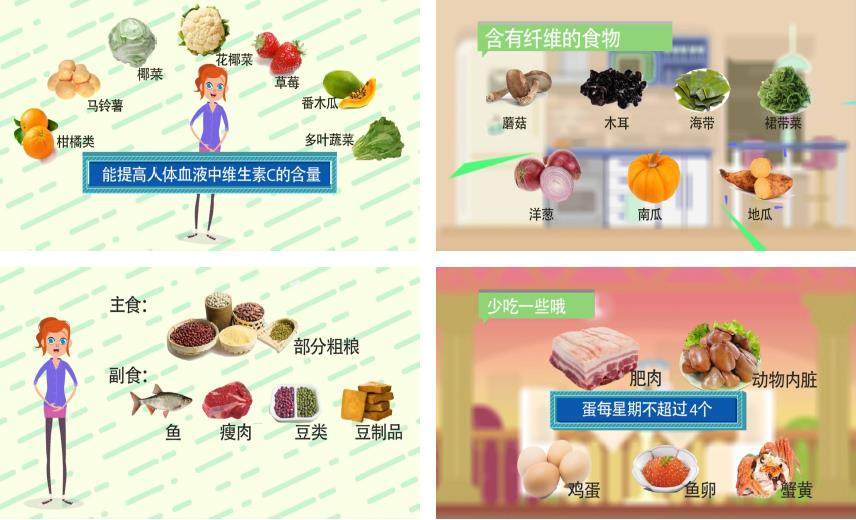 三、应该减少含高胆固醇物质的摄取,少吃肥肉、动物内脏、各种鱼卵、蟹黄等,鸡蛋每星期不超过4个。主食应搭配部分粗粮,副食则以鱼、瘦肉、豆类及豆制品为主,多吃新鲜蔬菜和水果。