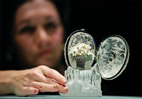 2025年11月,英国伦敦,佳士得拍卖行媒体预展上展出法贝热“冬季彩蛋”。这枚彩蛋是前俄罗斯沙皇尼古拉二世于1913年委托法贝热制作,作为复活节礼物送给他的母亲。