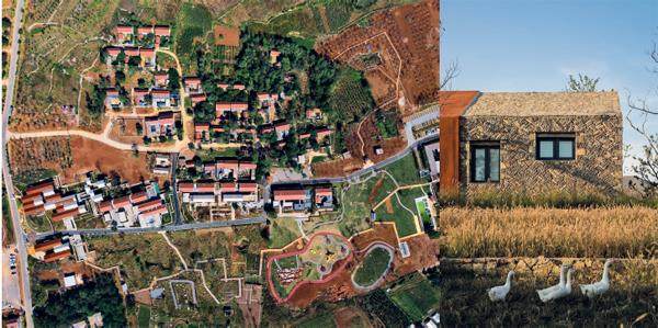 项目占地约7600平方米,场地呈线性分布,沿着村道自西向东深入田野。村道北侧是错落有致的民居,南面则是广袤的田野,而村院的聚集地则在东侧。这种布局经过几年的发展,使得功能布局从私密到公共,空间由封闭转向开放。设计师综合考虑了区位、交通及聚落肌理等因素,以当地民居的典型空间形态“院”为原型,数十座民宿坐落于场地原宅基之上,恢复了传统的民居肌理。最终将柿子岭理想村的业态布局调整为:东侧的民宿大院、中部的文创街区和西侧的公共服务中心。