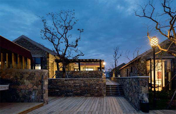 尊重原生地貌环境是本案的重点,EID Arch姜平工作室采用了适应性策略,从形态方位着手,顺应地貌特质进行形体布局。经建筑形态、体量与环境要素的多维度研究后,最终确定圆形为最适宜的母题语言,整体规划格局遵循低冲击的介入策略,将山体侵蚀和环境影响降至最低。