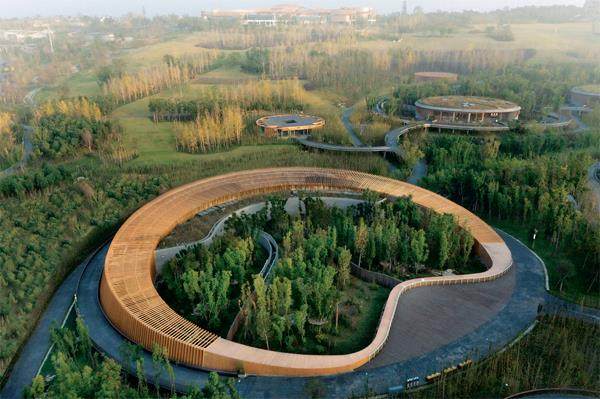 成都大熊猫繁育研究基地熊猫新舍(下简称新舍)隶属于成都国家大熊猫研究繁育基地园区内的扩建项目,占地12809平方米,位于成都市北郊的茂林修竹中,毗邻北湖生态公园、成都植物园,拥有得天独厚的原生态自然环境。新舍涵盖动物行为研究、科普教育、旅游观赏等多样化的复合功能。新舍历两年半时间竣工,目前已投入使用,并吸引了来自全国各地的访客。
