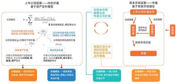 2024年10月,东方财富证券、复旦大学管理学院联合发布《央国企上市公司市值管理白皮书》,将价值创造、价值成长、价值传递和价值维护作为市值管理的四要素,认为市值管理是上市公司在不断夯实自身价值创造和价值成长,提高上市公司质量的基础上,通过价值传递加深资本市场对公司内在价值的认同,综合运用资本市场运作策略维护和增进投资价值,以增强投资者回报的战略管理行为。在此基础上,今年我们进一步明确对价值与成长两大要素的划分,同时将理论框架和实操层面的财务报表进行了对应,更清晰地描述上市公司市值管理的具体路径和逻辑。