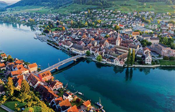 我的环线之旅始于如梦似幻的施泰因镇。清晨的第一缕阳光洒在莱茵河的河面上,为这座中世纪小镇披上了金色的外衣。如果说瑞士大环线是一本精装故事书,那么施泰因就是那张绘着金边的扉页,静静地等待着旅人翻开。