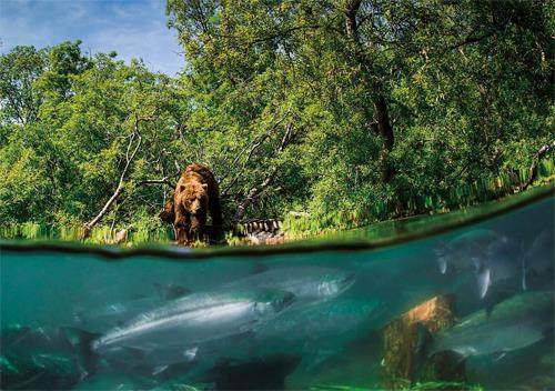 将目光转向河流,那里有堪察加另一场生命的史诗——令人心潮澎湃的鲑鱼洄游。鲑鱼常被称为三文鱼,属于典型的溯河洄游型鱼类,也是一生只繁殖一次的物种,繁殖结束后便会死亡。夏季是鲑鱼的繁殖季,大部分鲑鱼会凭着敏锐的嗅觉记忆重返出生地产卵。那时,数百万条鲑鱼会从太平洋逆流而上,游进淡水水域,冲破层层激流,只为完成生命的最后旅程。