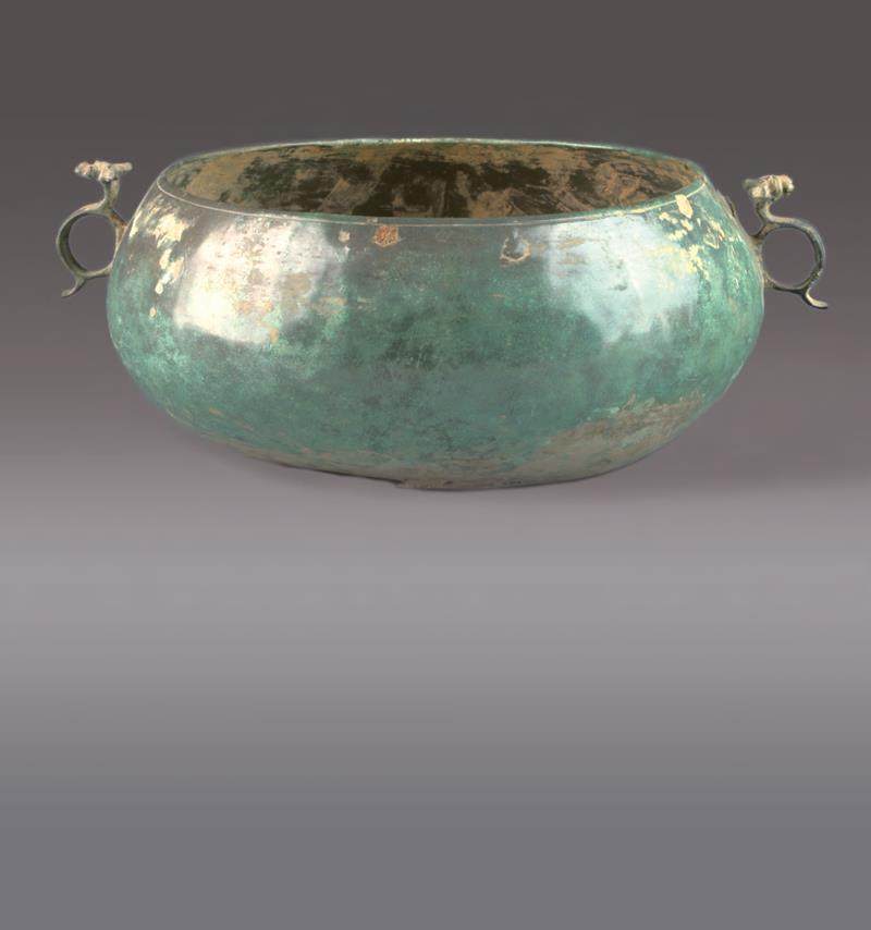 我是煮茶界的元老——汉青铜兽耳釜。看我大大的肚子就知道我很“有料”,我的两只耳朵是螭(chī)龙形,龙首外昂,龙尾上翘,是不是很威风?我的外表十分沧桑,附着了不少绿锈斑点,这是我历经千年岁月的见证。