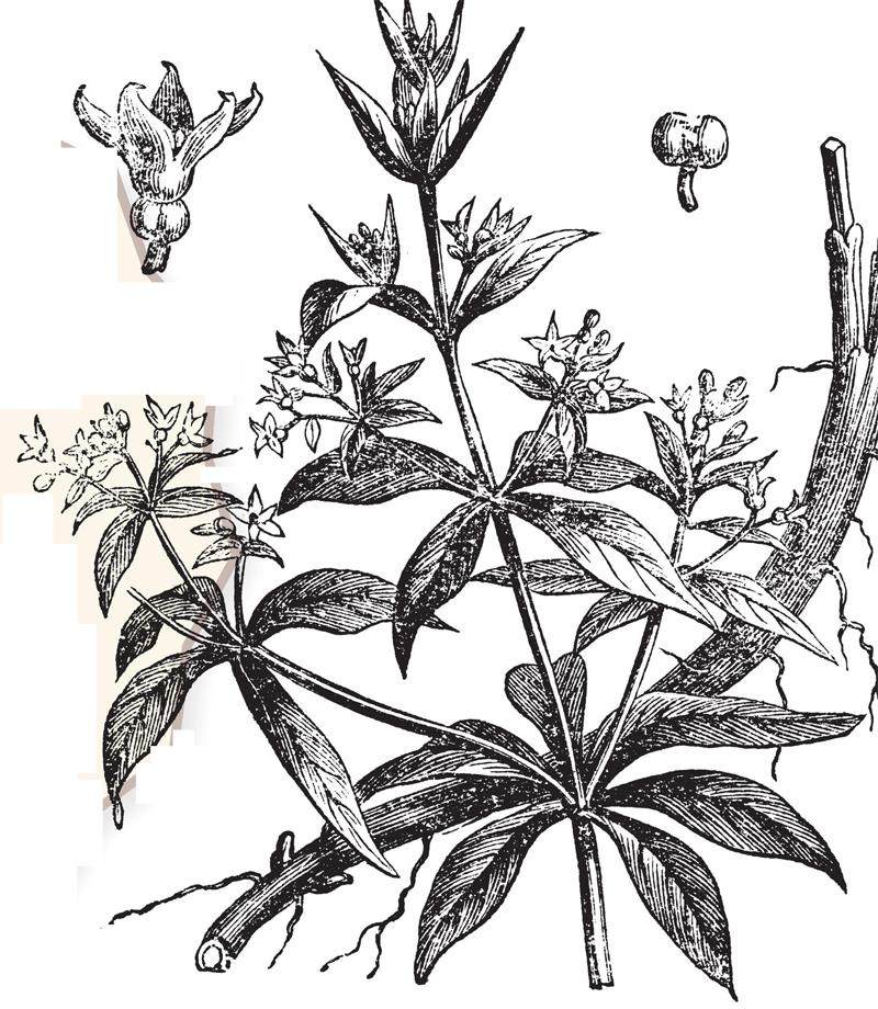 作为攀缘藤本植物,茜草的植株相对较小,形态却颇为奇特。其全株长度不过1~2米,最长的也极少超过3.5米。那看似柔弱短小的身体却颇为蛮横地缠绕在高出其自身数倍的植物身上,满身的粗糙倒刺更是令人望而生畏。