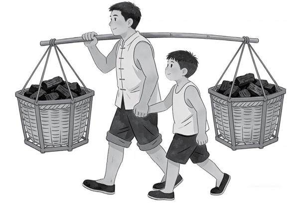 冬天来临,街头行人已换上了棉衣。老城墙的角落里,不知何时多了个卖炭的老翁。他佝偻着背,拉着辆旧板车,车上装着一筐筐黑亮的木炭,沿街吆喝时,声音拖得绵长:“卖——木——炭——喽——”偶有行人停下问价,他便指着木炭,语气里藏着几分得意:“这可是陈山的硬木,柘田的翠竹烧的……”那昂起的头颅、眼里闪着的骄傲与自信,像一把钥匙,瞬间打开了我记忆的深锁——那不就是父亲当年的模样吗?