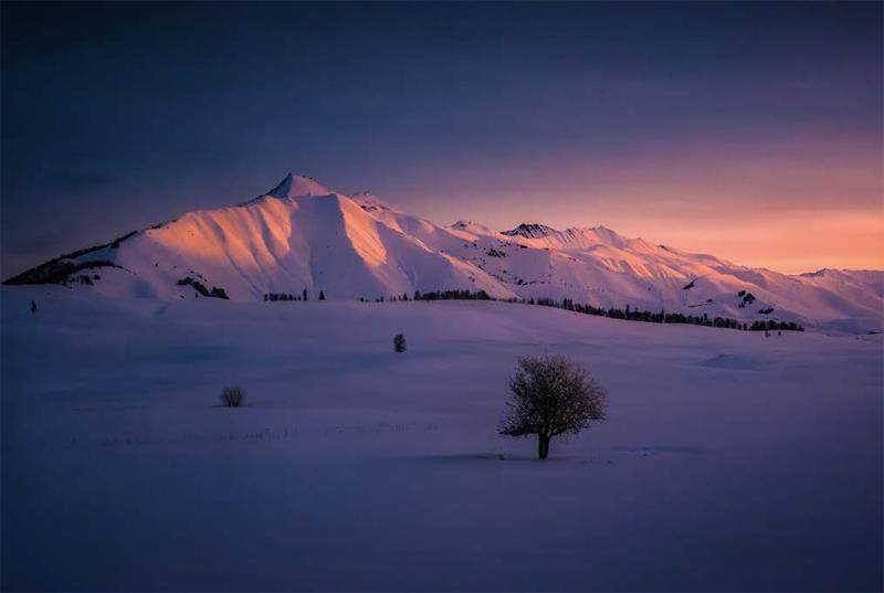 在《禾木雪山下的独树》中,一棵古树仿佛爱恋着远方的雪山,在荒原中安静地凝视着山峦的晨昏变幻,日复一日地守望。那种孤高安宁的姿态,让我想起三毛诗中的意境——如此一生,也是幸福。我们也可以像树一般,在现实的土壤里深深扎根,在理想的天空中无畏飞扬,在沉默中积蓄力量,以骄傲守护灵魂,一半为过客洒下阴凉,一半为自己汲取阳光,茁壮而宁静。