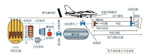 其次,蒸汽弹射器的能源也有问题。虽说核动力航母上的热能基本无限,但蒸汽弹射器需要水蒸气作为工质;每次工作时,都要消耗几百千克的过热水。但是,水的沸点和气压密切相关,虽然锅炉能不断为蓄热器补充蒸汽,但补气速率难以满足全速弹射所需。因此,多次弹射后,蒸汽压力就会明显不足,弹射器必须降频运行,甚至还会让同样消耗蒸汽的推进系统功率下降,导致航母难以保持全速航行,进而降低甲板风速,影响舰载机的起飞性能。