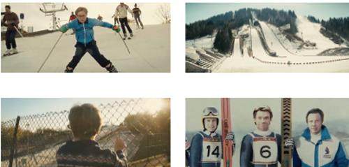 可当他撕下速降滑雪海报,露出里面的跳台滑雪海报一角时,电视恰好播放着解说:“跳台滑雪或许是最恢弘的高山项目,是违反重力的奇观。在德国加米施训练营,你将遇到世界各地的跳台滑雪精英,马蒂·尼凯宁正向世界展示什么是真正的跳台滑雪……”艾迪的眼睛再次有了光,他迎来二度“顿悟时刻”——跳台滑雪。