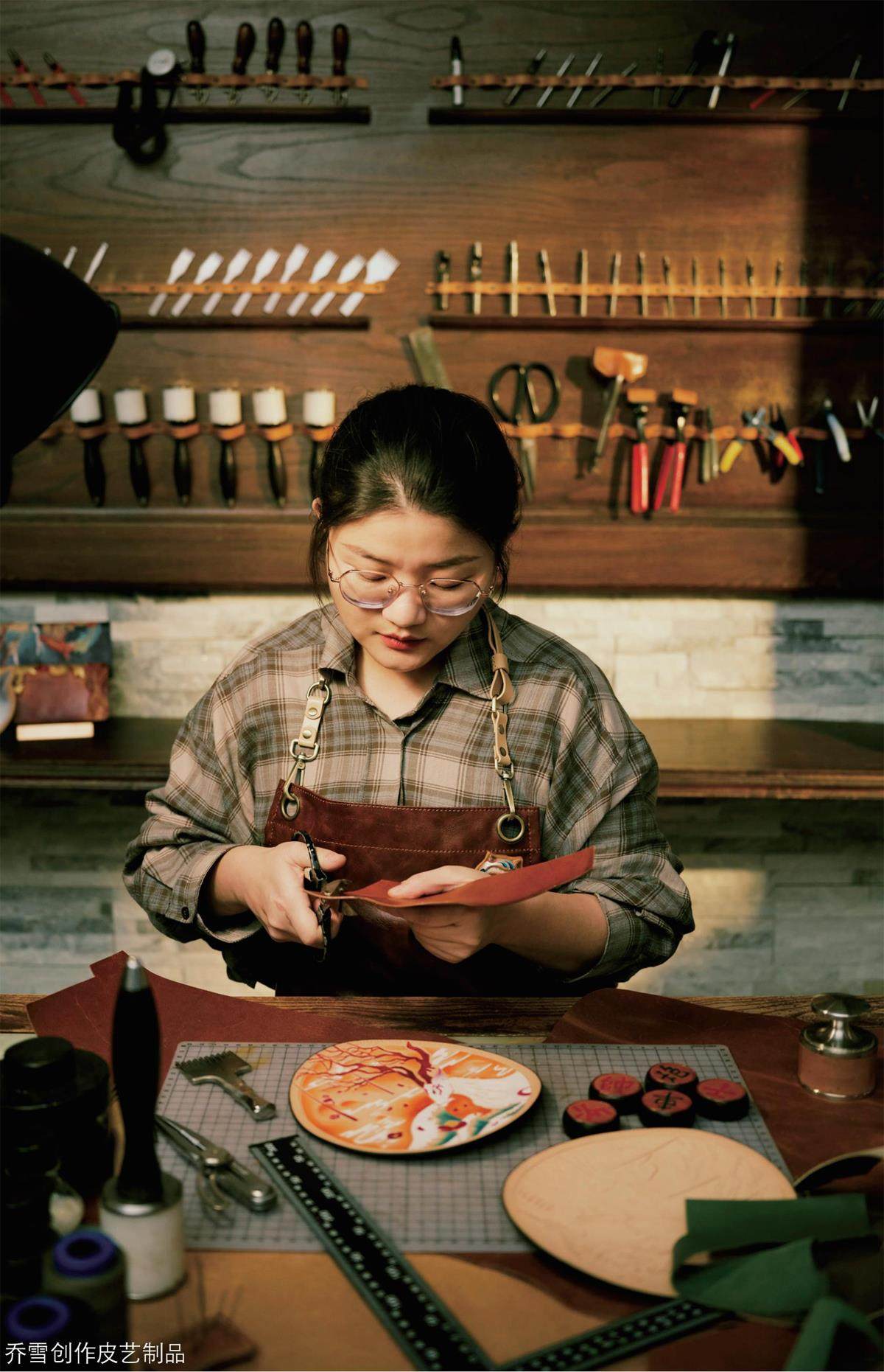 9岁那年,乔雪拿起刻刀,完成了平生第一件作品——用羊尾巴制作的皮艺挂件。但是,在那个年代,想凭借传统手工技艺为生很难实现,加之父母的反对,她从未想过将爱好当作出路。一贯品学兼优的她,高中毕业时考入天津一所大学的会计专业。