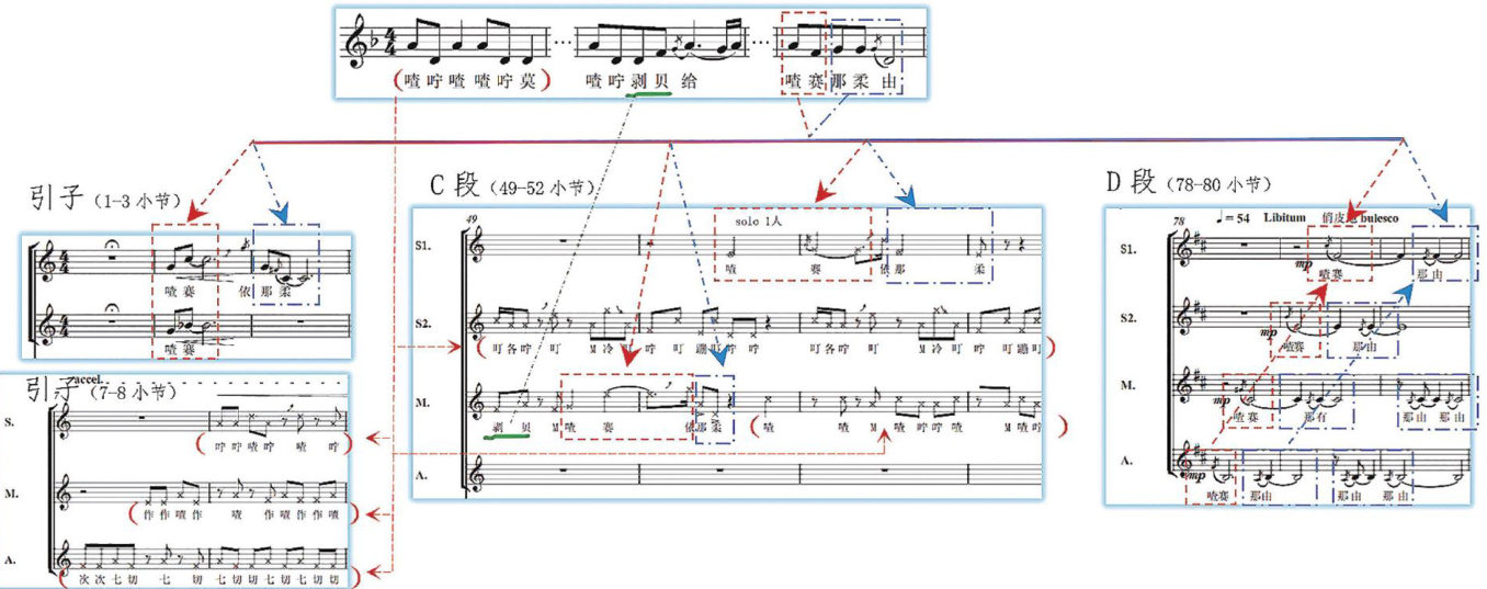 图2《水母鸡》的整体结构及贯穿全曲的母语基因