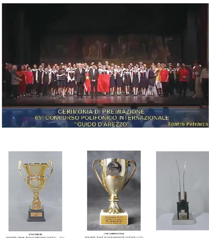 这部作品最初因语言前卫而未受合唱界的广泛关注,其传播得益于杨鸿年、杨力等指挥家的发掘与推广。作为中国合唱教育的奠基者,杨鸿年敏锐地意识到母语合唱的独特价值,率先将刘晓耕的作品引入专业演出体系。在杨鸿年与杨力等指挥家的持续推动下,《水母鸡》经由一系列国际赛事的成功演绎与艺术呈现③,成为中国当代合唱作品国际传播的标志性案例(见图3)。
