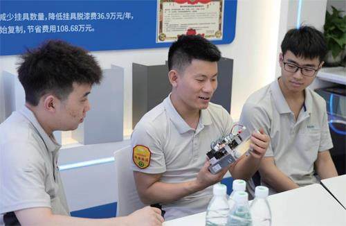 2011年,车间里的喷粉班组缺人,领导找到卢跃富,问他愿不愿意调岗。“当时没想太多,就觉得喷粉工序技术含量高,或许能多学点东西,而且自己喜欢的女孩也在喷粉班组。”卢跃富笑着说,这个看似随性的决定,却让他与喷粉工艺结下了不解之缘。