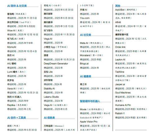 资本用真金白银勾勒出清晰的产业图谱,也培育了AI应用生态的野蛮生长。在日渐繁荣的背后,行业也经历了系统性的“断舍离”。根据行业统计(AIGraveyard、IDC报告),2025年全球全年约392个AI工具停止运营(平均每天1+个)。