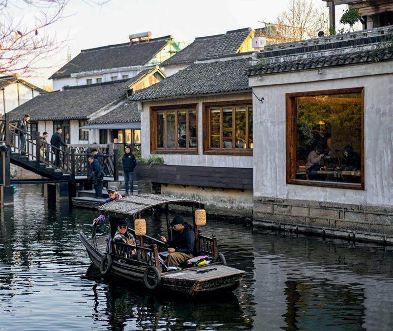 石板老街,咖啡飘香。江苏省昆山市歇马桥村在保护古村肌理的同时,盘活闲置农宅,引入“村咖”、民宿、汉服馆等业态,打造人文与休闲交融的乡村空间,带火江南乡村游。