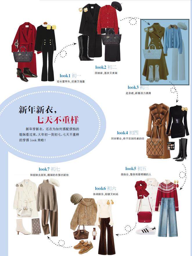 新年穿新衣,还在为如何搭配烦恼的姐妹看过来。大年初一到初七,七天不重样的穿搭look来啦!