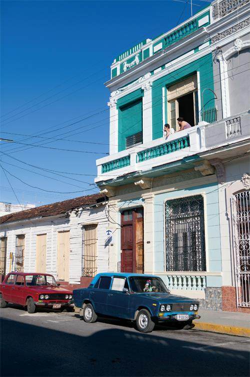 如果从熟悉的哈瓦那来到这里,还会发现这座城市的布局与哈瓦那差异明显。相比哈瓦那逼仄而不规则的街巷,这里的街区更为理性、轩敞。城市围绕马蒂①广场展开,形成尺度统一、彼此对称的街道格局。街角取直,没有过多转折。相较于哈瓦那常见的西班牙庭院和厚墙,这里更多的是高挑的木百叶窗,是热带改良版的新古典风格。颜色也略有不同,相比哈瓦那偏暖的蓝色,这里的蓝更为深邃—不知道是否一个背靠墨西哥湾,另一个毗邻加勒比海的缘故。