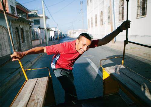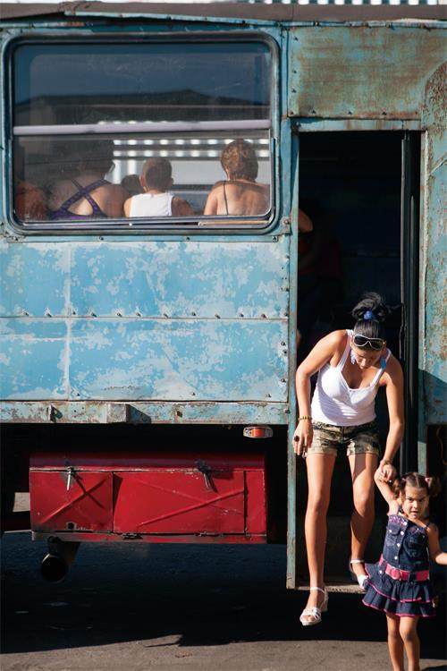 今天,要从西恩富戈斯前往海湾,最方便的方式仍是陆上交通。新年前的倒数第二天,我和一群返乡的村民一起登上了一辆由美式国际牌卡车改装的城乡taxi。哪怕是一辆鲜有游客光顾的乡下通勤车,后视镜的背面依然贴着一张三位比基尼女郎面向海滩的风光宣传照;而几分钟前购票的车站办公室里,玻璃台面下压着好几张耶稣像。