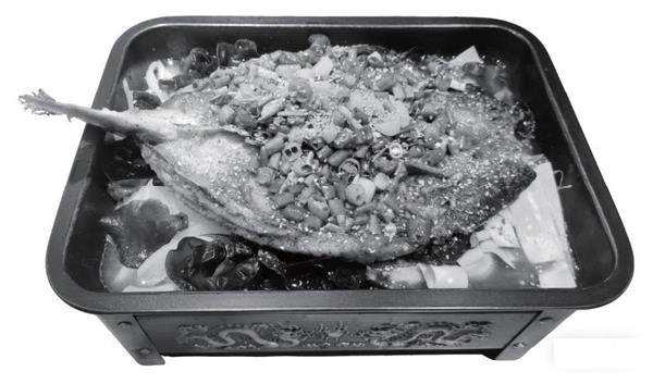 等待片刻后,一股极其猛烈的香气,如同有形有质的浪潮,劈头盖脸地涌了过来。我的“五脏庙”,立刻诚实地鸣起了鼓。“来喽!您的烤鱼,小心烫着!”老板娘和一个伙计抬着一口巨大的、黑沉沉的铁盘,稳稳当当地放在我桌子中央的卡式炉上。