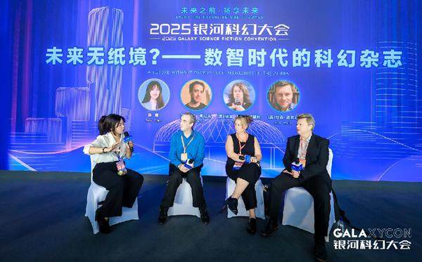 其中,“未来无纸境——数智时代的科幻杂志”是特别让人印象深刻的一场,因为嘉宾——《克拉克世界》杂志主编尼尔·克拉克、《轨迹》杂志主编丽泽·绰隆比、英国火焰树出版社创始人尼克·威尔斯和《科幻世界》编辑部主任陈曜都是年年见面的老朋友,会议以轻松的去年工作回顾展开。几位嘉宾先是分享了自己杂志的运营经验,《克拉克世界》的线上会员制模式、《轨迹》取消和试图恢复实体杂志的心路历程、火焰树出版社以做精装书刺激收藏来销售经典实体书的策略……而后话题也不可避免地转向AI投稿,对于这方面,尼尔·克拉克和科幻世界都可谓是经验丰富,目前的共识还是AI写作在文学上尚且无法复刻人类写作的肌理,但谁知道呢?正如在场的科幻世界前编辑单反所提出的问题,以后我们可能得去互联网深处挖掘没有被AI内容污染过的信息“沉船”了……