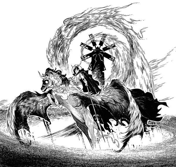 现在,已经没人知道宇航员本人身在何处,倒是随处都能看到她头戴面罩、身穿战衣的形象。尤其是三十周年盛典上的全新绘制:一身超级英雄的打扮,骑着独角兽,手持战矛,正要去挑战风车上呼呼旋转的巨大火球。