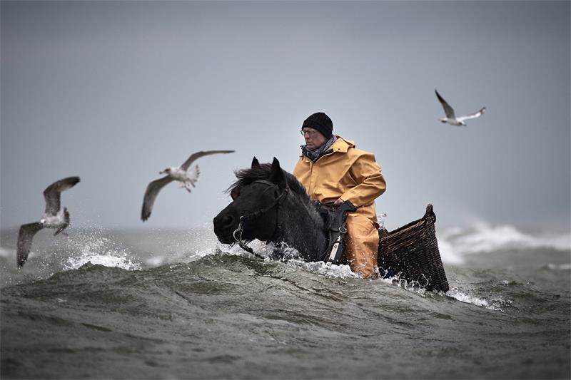 这些捕虾者被当地人称为“马渔夫”(Paard 意为马,Vissers 意为渔夫)。比利时仅存的几位马渔夫之一的斯特凡·汉克坚守着这一传统的职业。“捕虾的最佳时间是5月至7月以及9月至11月,”他说,“那时水温在8至12摄氏度之间,是最佳温度。而且风越小越好。”