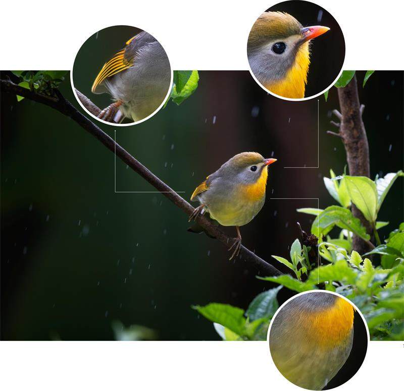 同时,镜头内置5级光学防抖(OIS)与机身协同防抖技术,即使在追踪快速移动的红嘴相思鸟时,1/500秒快门速度仍能呈现清晰羽纹。WR 全天候防护设计让器材在雨林90%的湿度环境中保持正常运作,当突发阵雨来临时,无需中断拍摄即可应对突变天气。